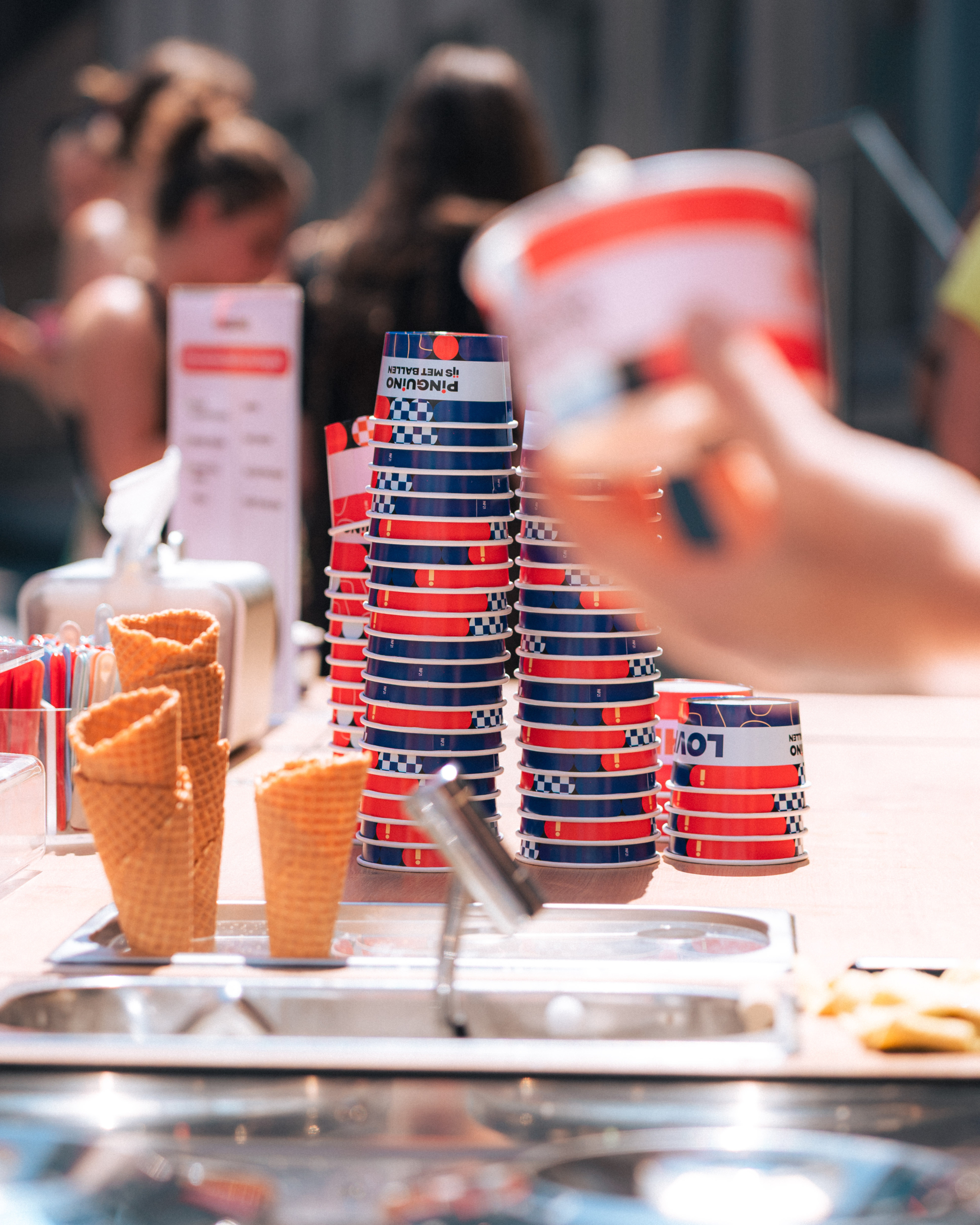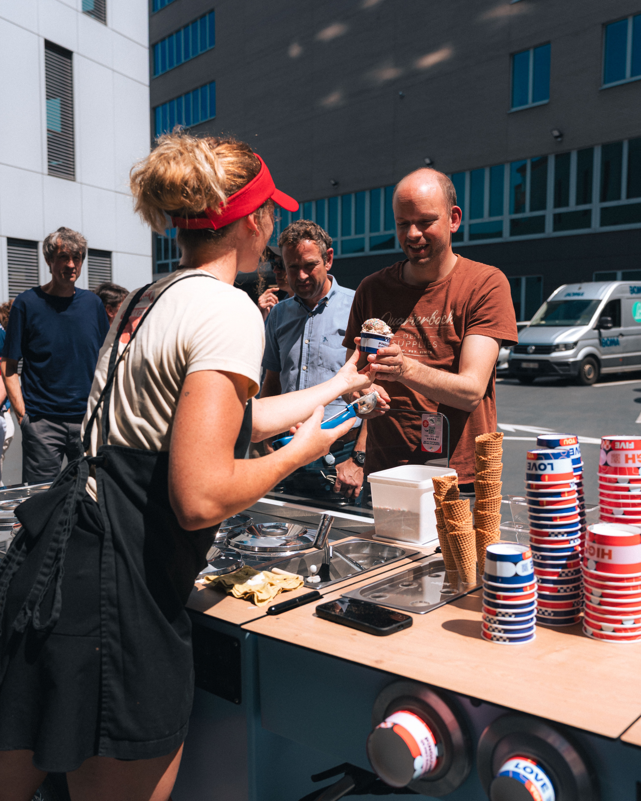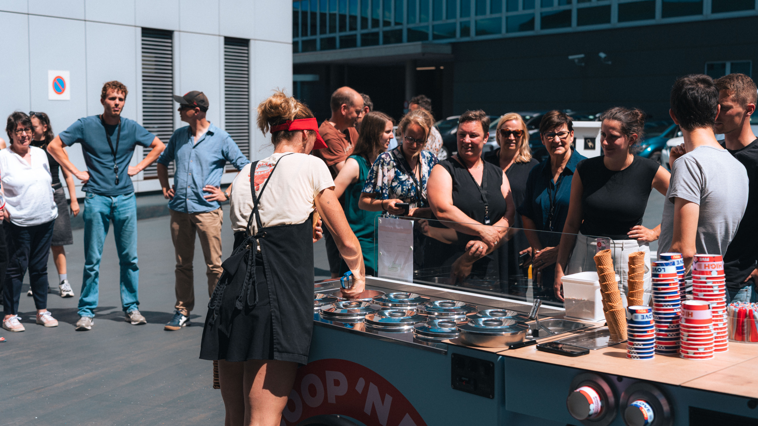 Met onze scoop ’n ride kunnen wij, afhankelijk van de gekozen formule evenementen tot 1000+ personen voorzien van ijs. Voor grote evenementen neem je best contact op via ijskar@pinguino.be. Wij denken graag met jou mee om de service op het evenement zo vlot mogelijk te laten verlopen.